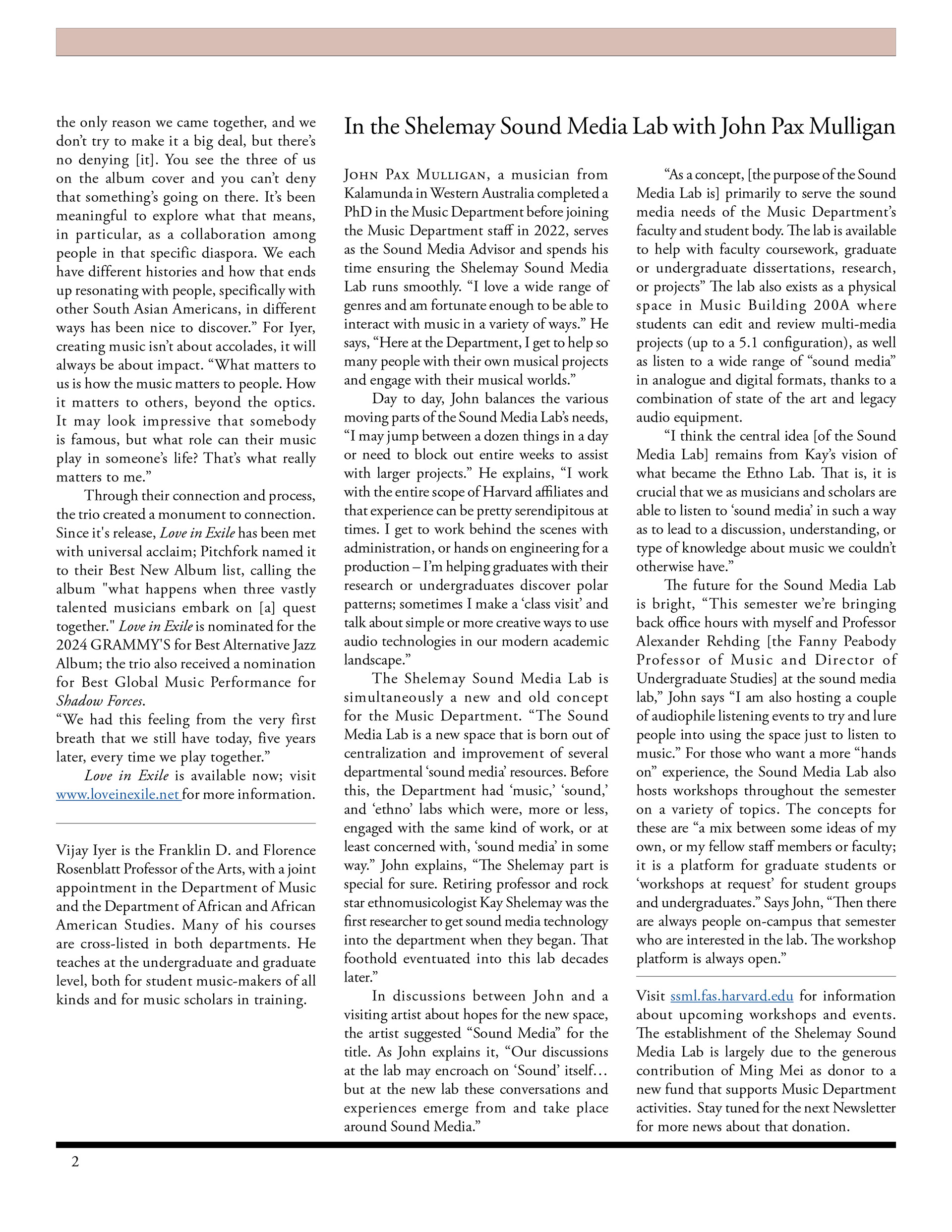 Harvard Music Newsletter - Summer 2023