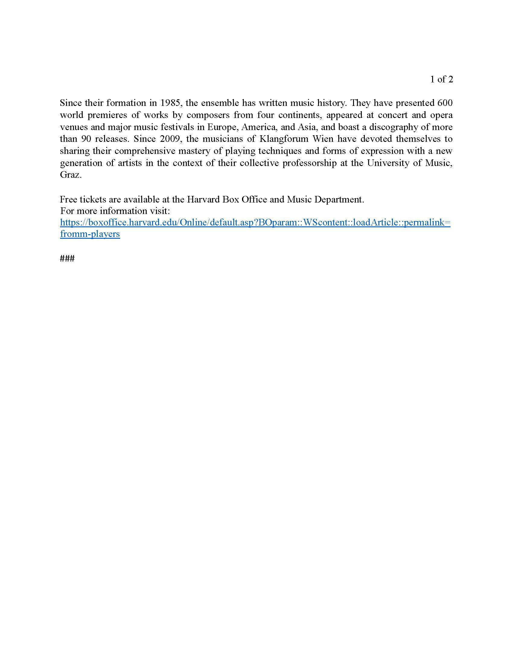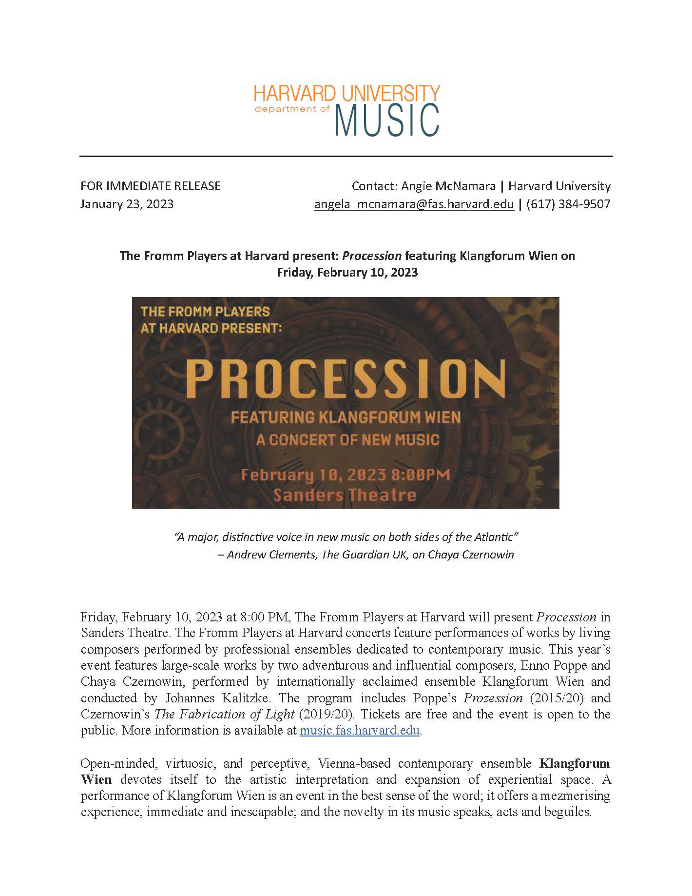 Harvard Music Newsletter - Winter 2023